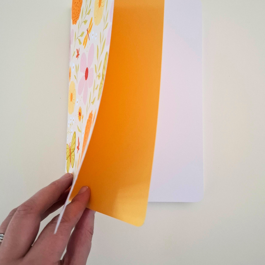 The A5 notebook has an additional yellow first and last page to add an extra pop of colour and personality.
